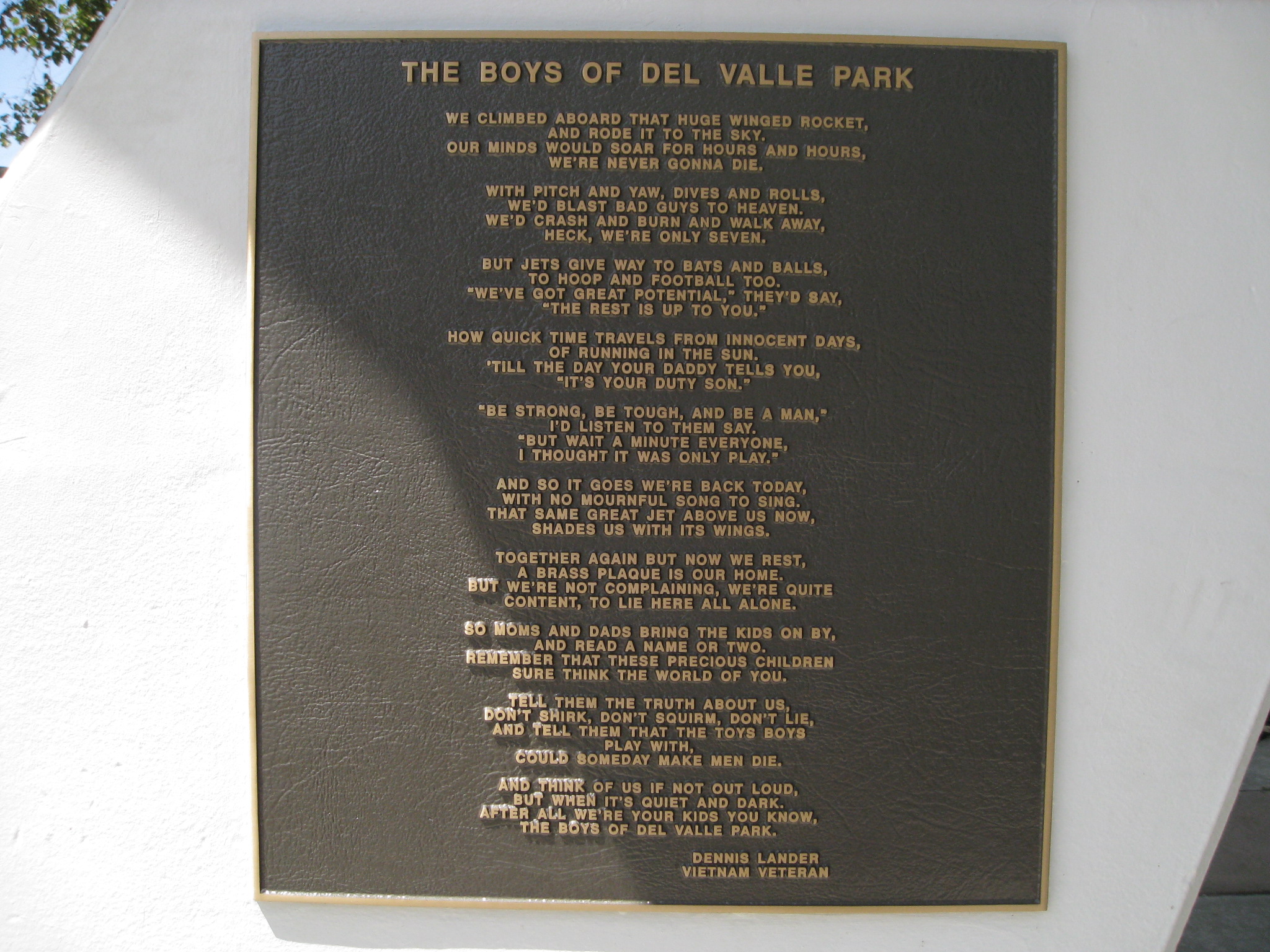 I visited the local city park and got emotionally clobbered by what I discovered. I cannot recall why I visited the Park that day; it does not happen often. But I clearly remember walking over to the bomber aircraft mounted on a pylon to take a closer look. The bomber is the centerpiece of the City’s memorial to our war dead. Memorials by custom have various bronze plaques designed to inform the visitor and this memorial hews to custom. It has multiple plaques in several locations. It happened when I started to read the large central plaque. It is a poem composed by a Vietnam war veteran from our area. As I read into the poem, I realized this experience was going to change me in a powerful way. I was feeling grief and guilt as the poem returned me to the time of the Vietnam war. I remembered the 50,000 young citizens that died. I remembered the countless number who were maimed and those who never recovered. I thought of my wife’s youngest brother who remains disabled by exposure to Agent Orange. This national outrage happened on my watch as a citizen of our Nation. It was my generation that paid little heed to the events that resulted in the disaster of the Vietnam war. We compounded the disaster by treating the returning warriors in the most insulting way possible-we ignored them. Except for those who taunted and assaulted them at airport terminals. It was a shameful performance. Read the poem and you may understand better how I feel.