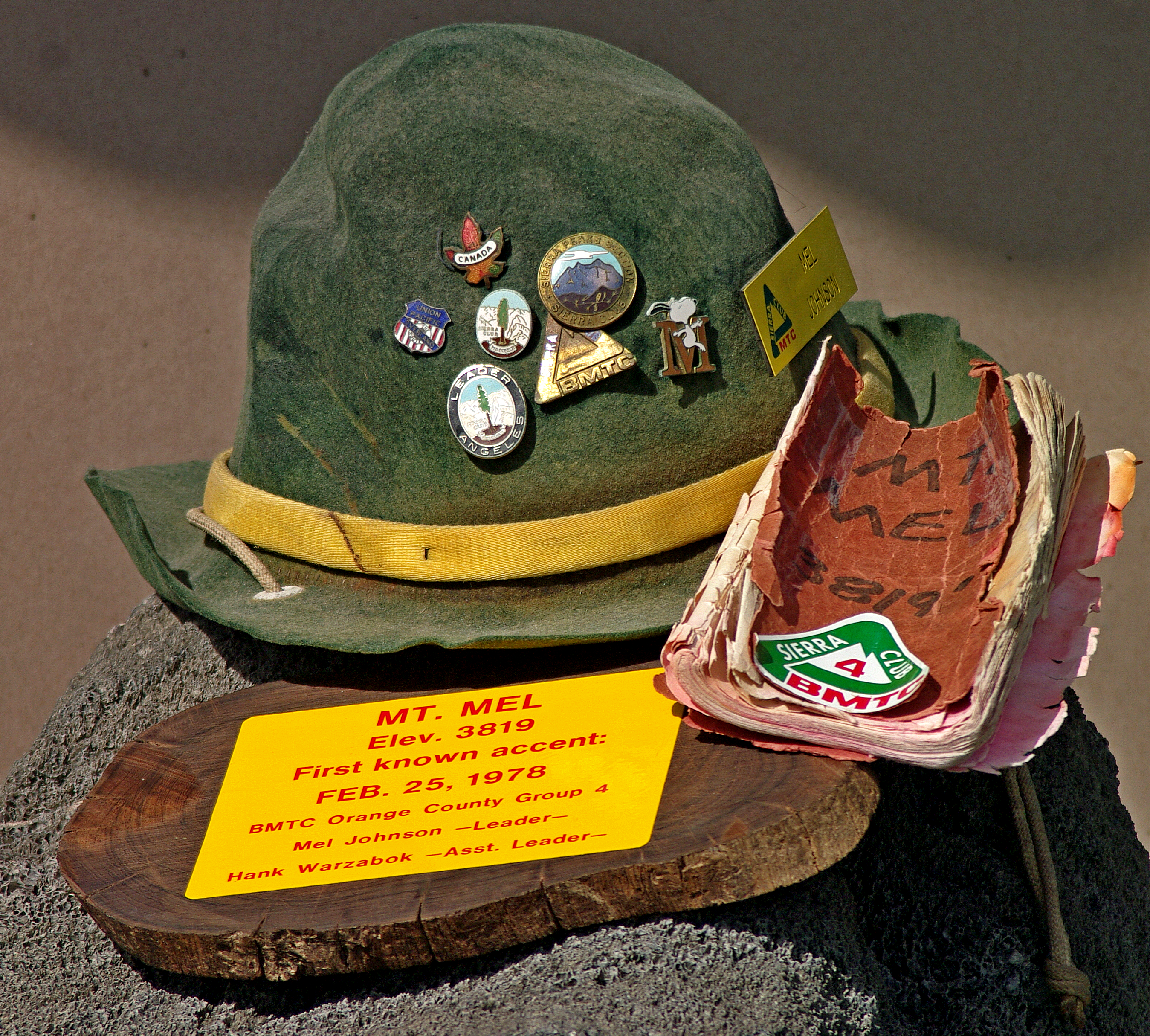 For reasons long since forgotten, the assistant leaders of “group 4” conspired to surprise me by springing a champagne fueled ceremony, before lunch, during which the small hill was named “Mt. Mel”. A suitably marked canister was left on the summitwhich contained a small book for future climbers to leave their mark. The event unfolded February 26, 1976. Years later, this book was recovered by one of my assistant leaders and given to me as a memento of a fondly remembered period of my life. The last entry in the book is dated October 23, 1993. Later, the “group 4” leaders became known as the “Sierra Turkeys” and then the “Denali Turkeys”, as our climbing trips became more ambitious. But, that is another story.
