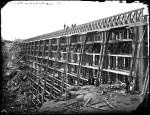 I was initially drawn to old images as a source of historical data by my attraction to the history of the Dale Creek Bridge. It is the astounding tale of building the longest and highest bridge on the eastern half of the Transcontinental railroad in the winter of 1868. A documented story of bridge construction tells how the partially completed bridge was nearly blown over by strong winds during a violent winter storm. According to the story, the engineer in charge rallied the frightened bridge workers to save the bridge from certain destruction. He had them gather all the ropes at the construction site and then cajoling them into securing the bridge by tying the ropes between the bridge and nearby rocks. The image shows the hurried nature of the attachment of the ropes, which gives greater authenticity to the story.