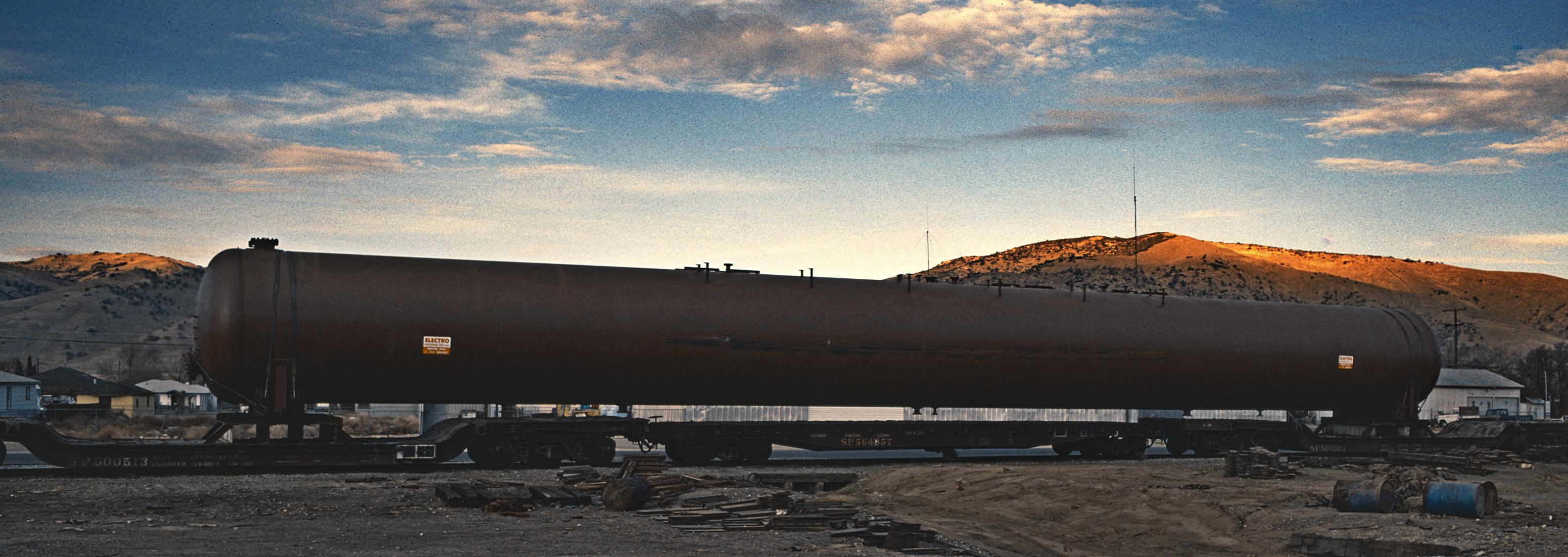 I present this image as a test of your modeling sensibilities. I assert that you lack the ‘right stuff’ to become a true modeler of railroad rolling stock if you heart does not skip a beat when you see this image. It has it all! The flatcars can be easily modelled from readily available cars and the ‘big watchmacallit’ on the cars is simple to model. Have fun!